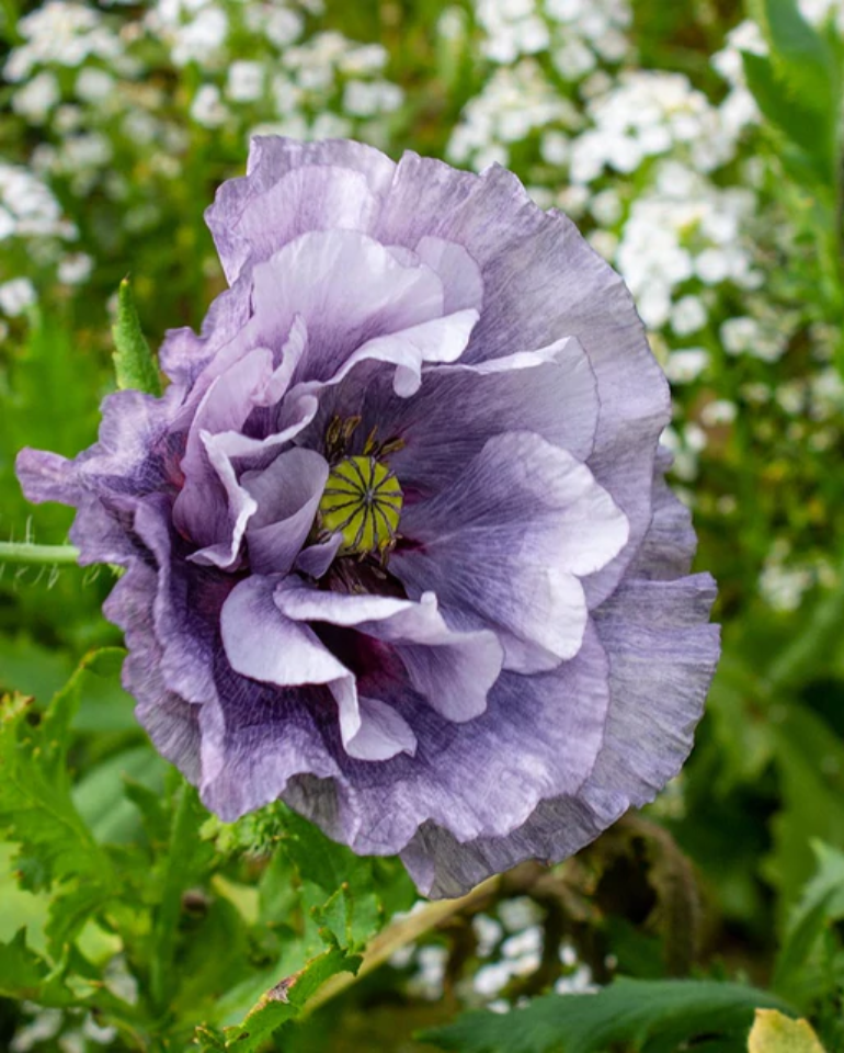 A true showstopper among poppies, ‘Amazing Grey’ lives up to its name with ethereal beauty unlike any other. Its petals are a misty blend of pale lilac and soft grey, shifting with the light to create an otherworldly, silken effect against rich green foliage. Each bloom is fully double, ruffled like tissue paper, giving the flowers a whimsical yet sophisticated charm.