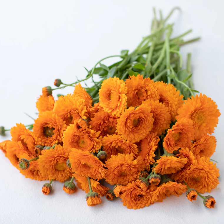 A favourite among pollinators and designers alike, Greenheart brings warmth and texture to every arrangement. Pair with Kees’ Orange Marigold for a glowing, sun-drenched palette, or with Linen Zinnia for an earthy, neutral contrast. A flower that embodies abundance, joy, and the quiet fire of late-summer light. Also known as English Marigold or Pot Marigold.